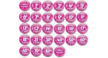An 18 inch Pink foil balloon on a weight. Choose from a Happy Birthday Balloon or a numbered age balloon. Choose more than one balloon to create a balloon bouquet