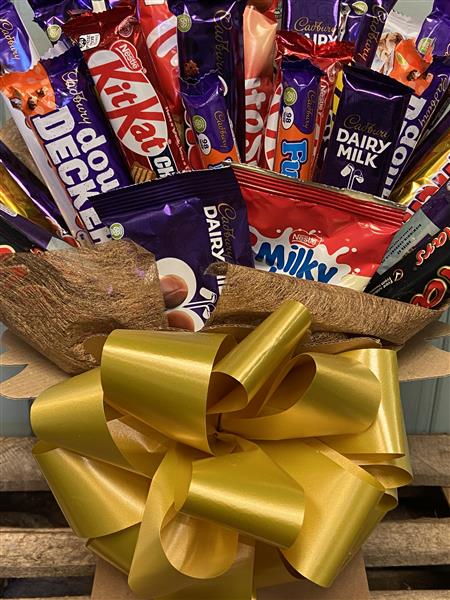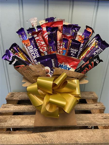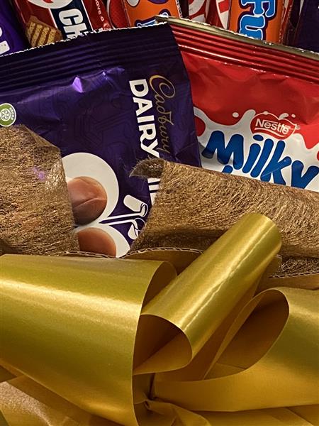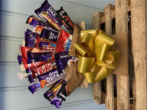 A funky great gift for any occasion to send to a single recipient or a group/family. A lovely mixture of Chocolate bars which could include flake, crunchie, curley wurly, whispa to name a few of the great bars of chocolate include. Great for the chocaholics amongst us. Chocolate selection may differ from picture.