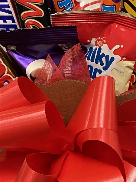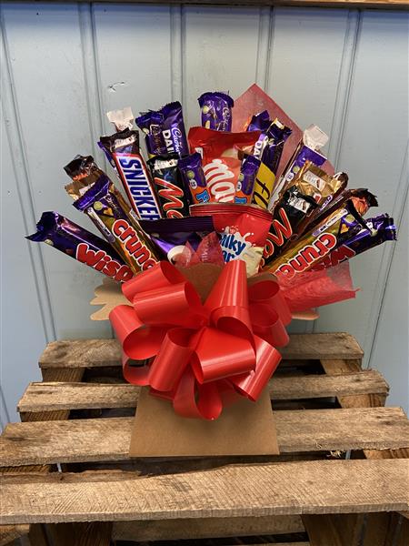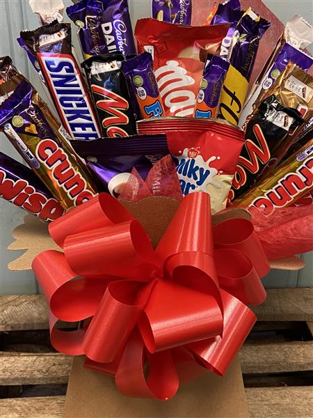 A funky great gift for any occasion to send to a single recipient or a group/family. A lovely mixture of Chocolate bars which could include flake, crunchie, curley wurly, whispa to name a few of the great bars of chocolate include. Great for the chocaholics amongst us. Chocolate selection may differ from picture.