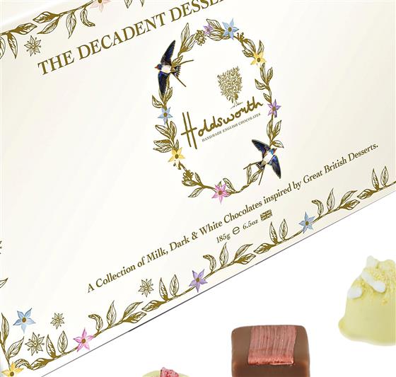 Packed into a stunning gift box, with intricate rose gold foil designs & Theobroma flowers.