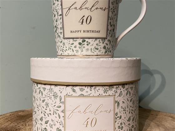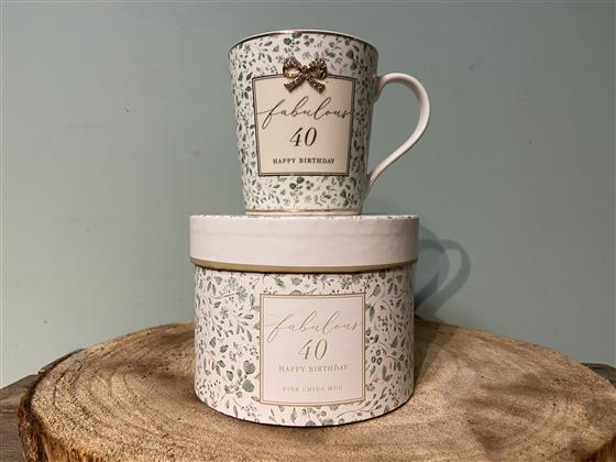 A beautiful and stylish boutique fine china mug, perfect for gifting to family or friends to celebrate their big milestone birthday. Featuring a gold and silver diamante bow on the label with matching presentation box.