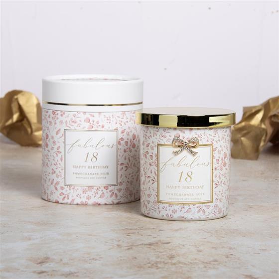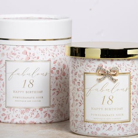 A beautiful and stylish boutique soy candle, perfect for gifting to family or friends to celebrate their big milestone birthday. Featuring a gold and silver diamante bow on the label with matching gold lid, this candle is scented with: