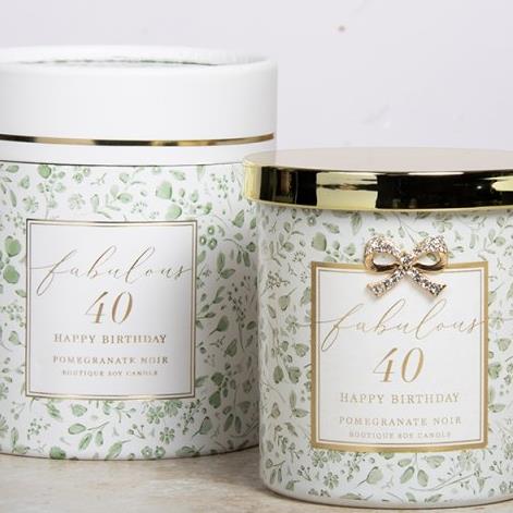 A beautiful and stylish boutique soy candle, perfect for gifting to family or friends to celebrate their big milestone birthday. Featuring a gold and silver diamante bow on the label with matching gold lid, this candle is scented with: