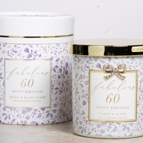 A beautiful and stylish boutique soy candle, perfect for gifting to family or friends to celebrate their big milestone birthday. Featuring a gold and silver diamante bow on the label with matching gold lid, this candle is scented with: