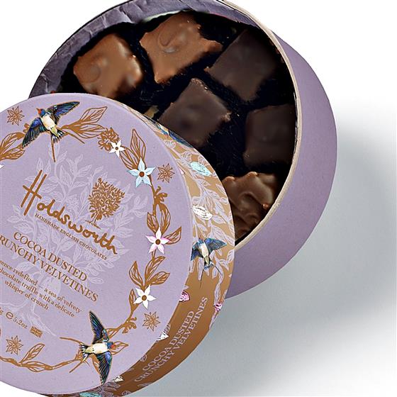 Milk Chocolate Crunchy Velvetine Truffles – Smooth, nutty praline centres, blended with crispy rice & dusted with cocoa. A truly indulgent treat.