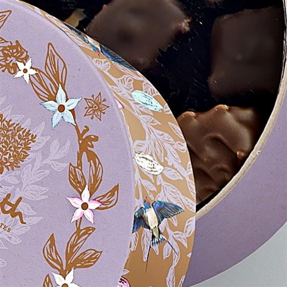 Rich and velvety truffles blended with praline & crispy rice and encased in cocoa – packed into a beautiful round gift box – a true chocolate lovers dream.