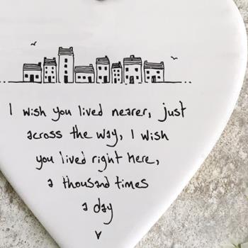 I wish you lived nearer, just across the way, I wish you lived right here, a thousand times a day