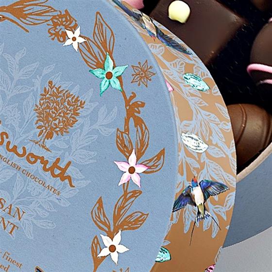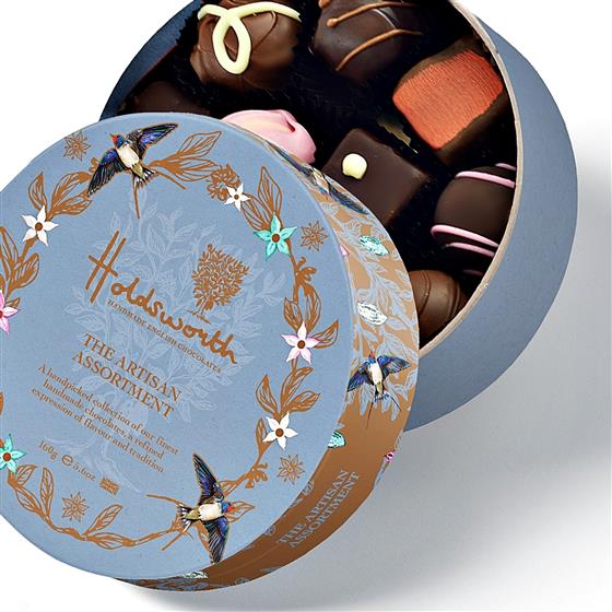 Our Artisan collection is a combination of our favourite handmade chocolates. Created in the heart of the Peak District, using only the finest ingredients. This beautiful box is the perfect self-indulgent treat or gift. Milk Chocolate Marc de Champagne Truffle – Decadent dark chocolate ganache truffle centre, infused with Marc de Champagne & enrobed in creamy milk chocolate.
