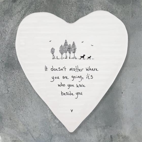 A very simple and stylish East of India white porcelain heart coaster. A great gift for family or friends.The charming saying is as follows:-